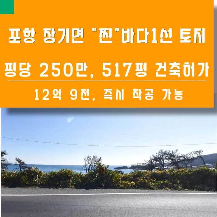 포항 장기면 "찐" 바다 1선, 평당 250만